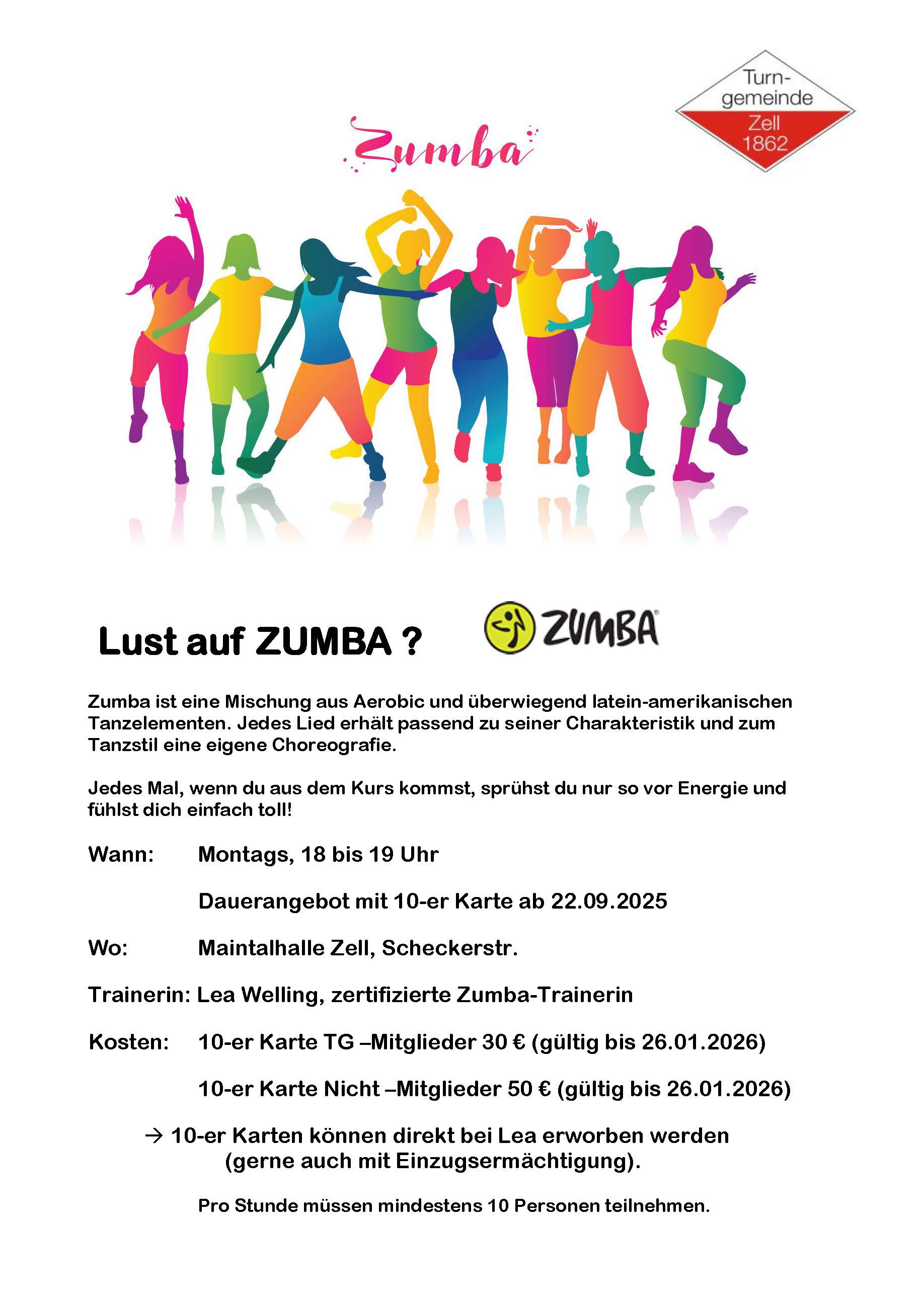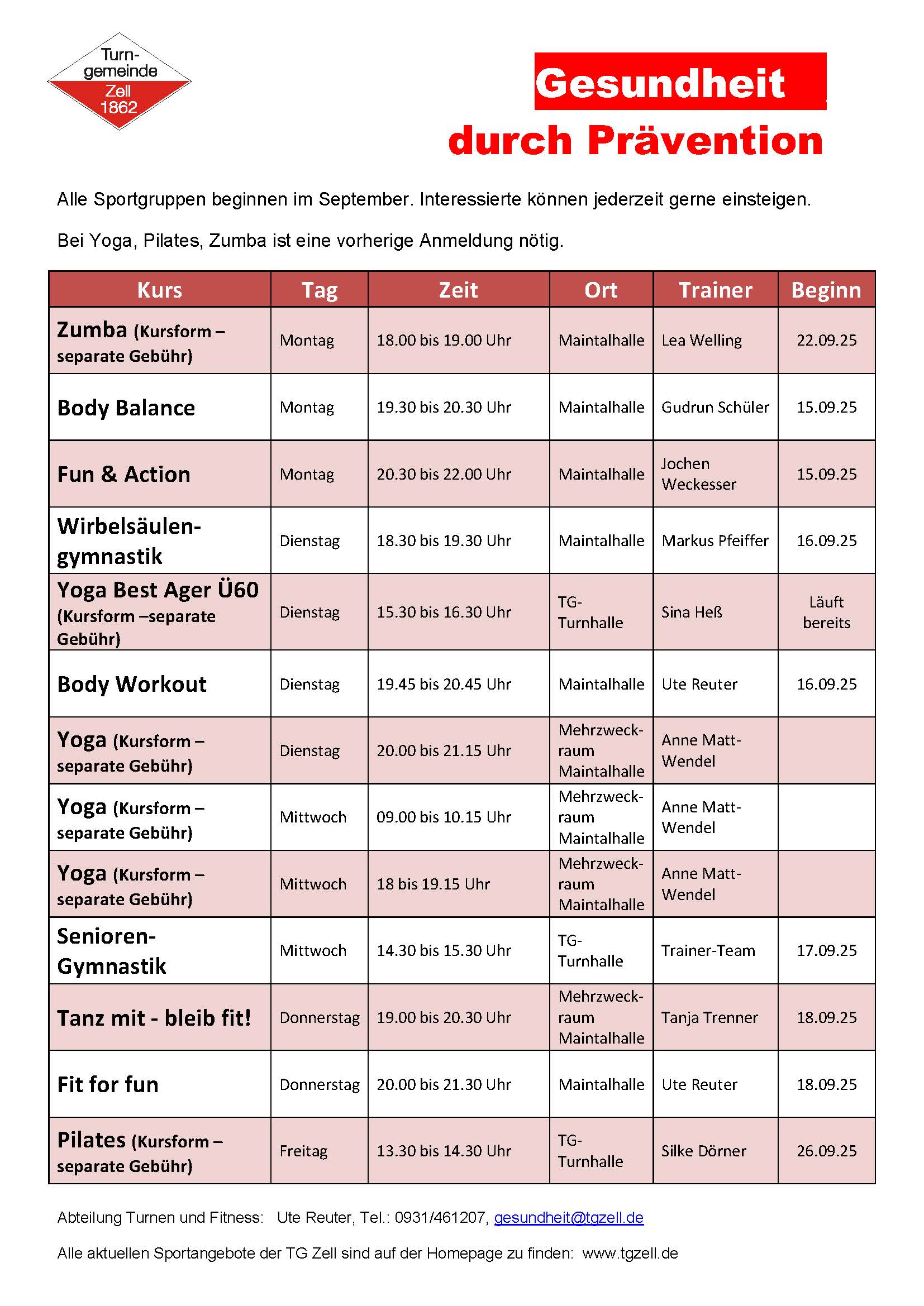 TG Zell - Abteilungsleiterin Turnen/Fitness: Ute Reuter, Tel. 0931/461207; Diese E-Mail-Adresse ist vor Spambots geschützt! Zur Anzeige muss JavaScript eingeschaltet sein!